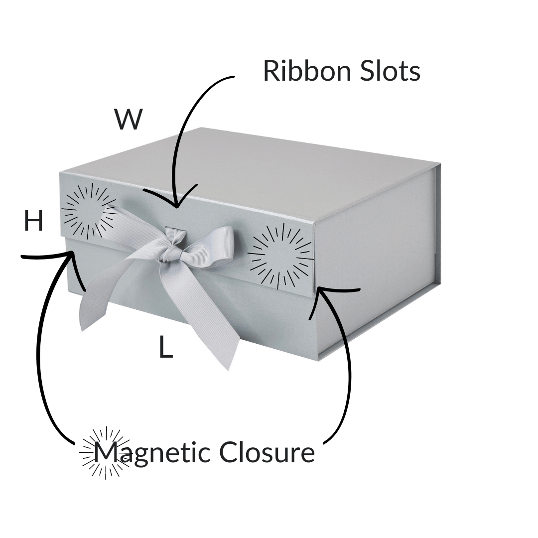Our pearl silver A5 Deep Gift Boxes with customizable ribbons are perfect for medium to large size corporate and luxury retail gifting.
