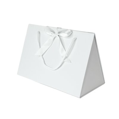 Our White Triangle Gift Boxes feature a modern foldable design that’s both sleek and functional, making them easy to assemble and store. Each box ties closed with a satin ribbon, creating a refined presentation that feels truly special. For businesses and events, we offer custom logo printing directly on the box as well as personalized satin ribbons — allowing you to showcase your brand or message in a stylish, memorable way. Perfect for weddings, corporate gifting, product launches, and special occasions, these boxes strike the ideal balance of elegance, durability, and thoughtful customization.